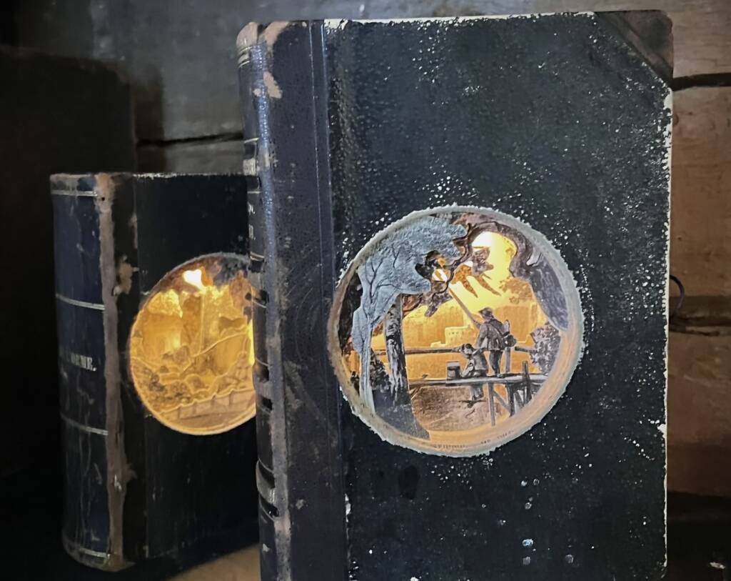 "Näkymiä"-näyttely koostuu vanhoista kirjoista tehdyistä teoksista. Näyttelyssä nähdään kirjojen sivuista tehtyjä veistoksia, suikalenipuista rakennettuja reliefimäisiä teoksia ja dioraamoja.